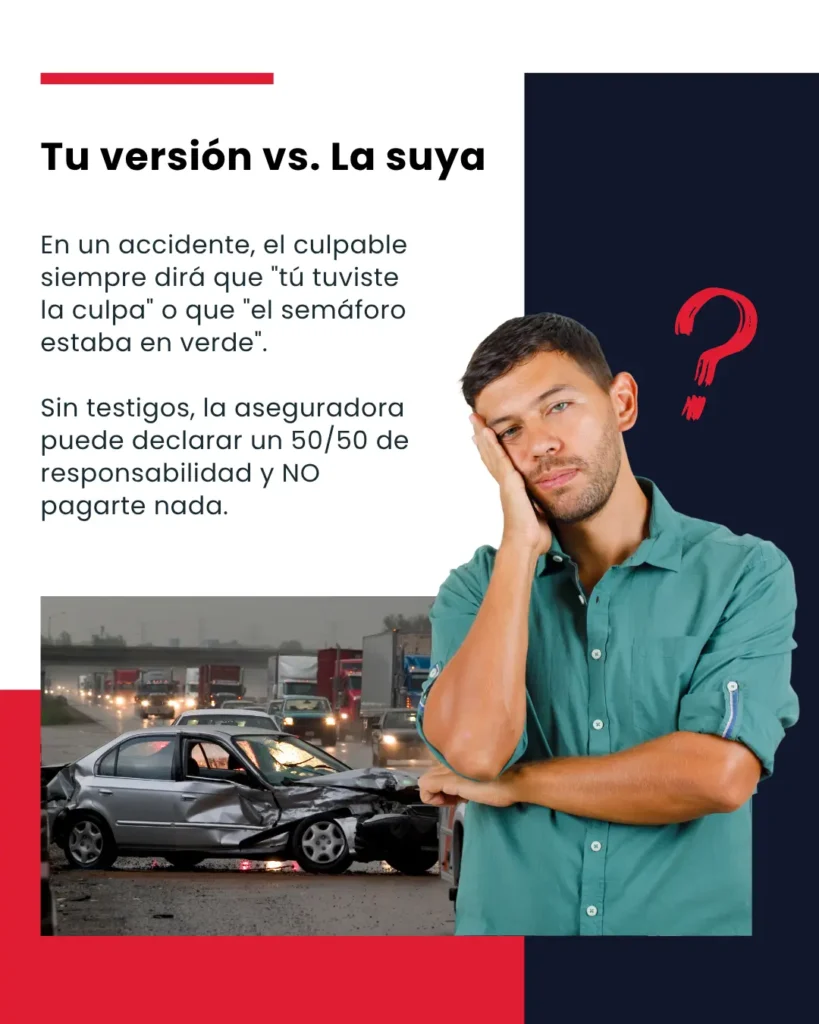 Su función principal es documentar lo que ocurre en la carretera y capturar evidencia en tiempo real antes, durante y después de un accidente.